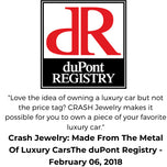 Where high-performance engineering meets high-fashion artistry. CRASH Jewelry upcycles salvaged panels from luxury European marques to create bold, eco-chic statement pieces that defy convention. We don’t just use metal; we preserve the exact factory finishes of Rosso Corsa reds and Baltic Blacks, handcrafted into one-of-a-kind jewelry that sparks immediate conversation.Owning a piece of CRASH means carrying a fragment of a supercar's journey. Every item is verified with a CRASH Jewelry Registration Card and a unique vehicle-specific engraving, securing its place as a personal and sustainable heirloom for the modern era.